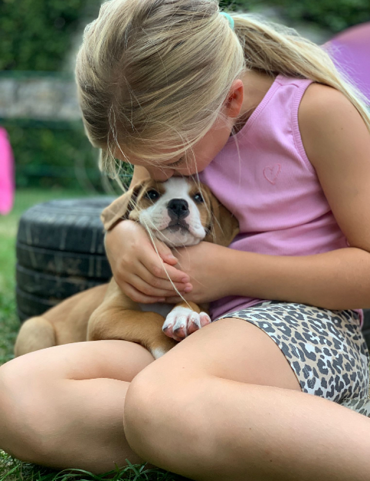 Ich möchte, dass unsere Welpen gesund, sicher und sozial kompetent aufwachsen. Die Mutterhündin wird respektiert und geschützt und die Welpen lernen früh, Menschen selbstbewusst, ruhig und entspannt zu begegnen – immer in einem Tempo, das die Mutterhündin vorgibt und für Welpen gut zu verarbeiten ist. So sind die Welpen nicht überfordert und können wohl dosiert lernen.