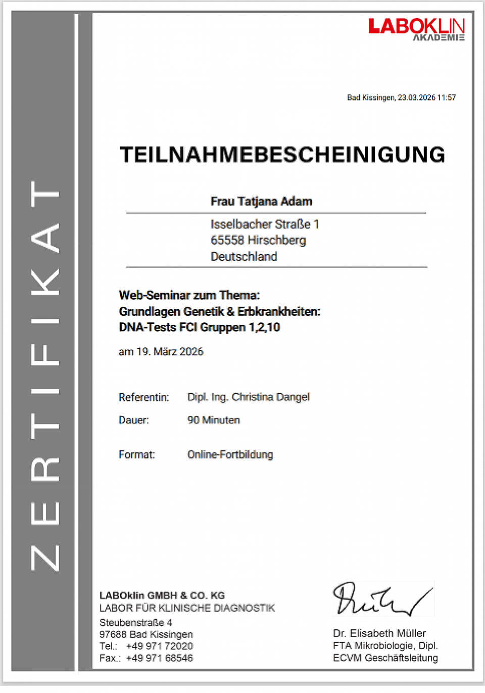 Auch unseren Nachwuchs lassen wir direkt auf genetisch vererbbare Krankheiten untersuchen. Wir streben an, noch mehr Untersuchungen als Vorraussetzung für die Zuchtzulassung durchführen zu lassen.